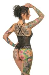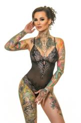 Zmysłowe body wykonane z elastycznej siateczki połączonej z przyjemną w dotyku koronką.